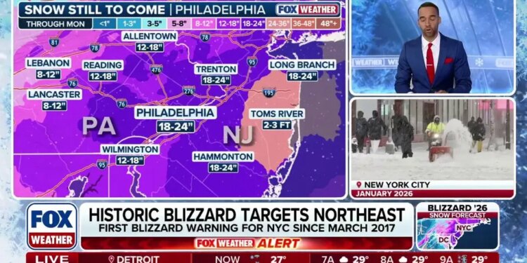 Snowfall of 1–2 feet is expected from Philadelphia to Boston, with the FOX Forecast Center calling for New Jersey and eastern Massachusetts to likely be the “jackpot” of this major storm.