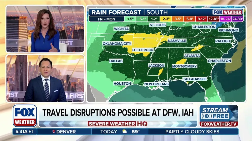 MILLIONS ACROSS THE SOUTH FACE BREWING CROSS-COUNTRY STORM AS FLOOD THREAT INCREASES