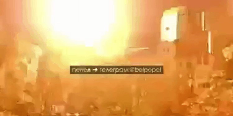 Footage shows a huge blast as the missile hits the building overnight.