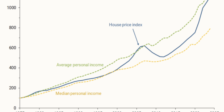 When looking at average income, the researchers found it grew “essentially one-for-one with house prices” from 1975 to 2024.
