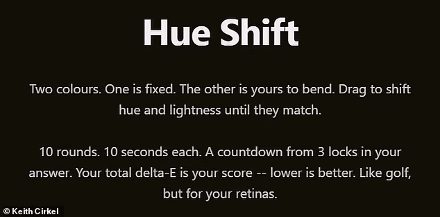 The ‘Hue Shift’ test shows you two colours and asks you to adjust one so they match