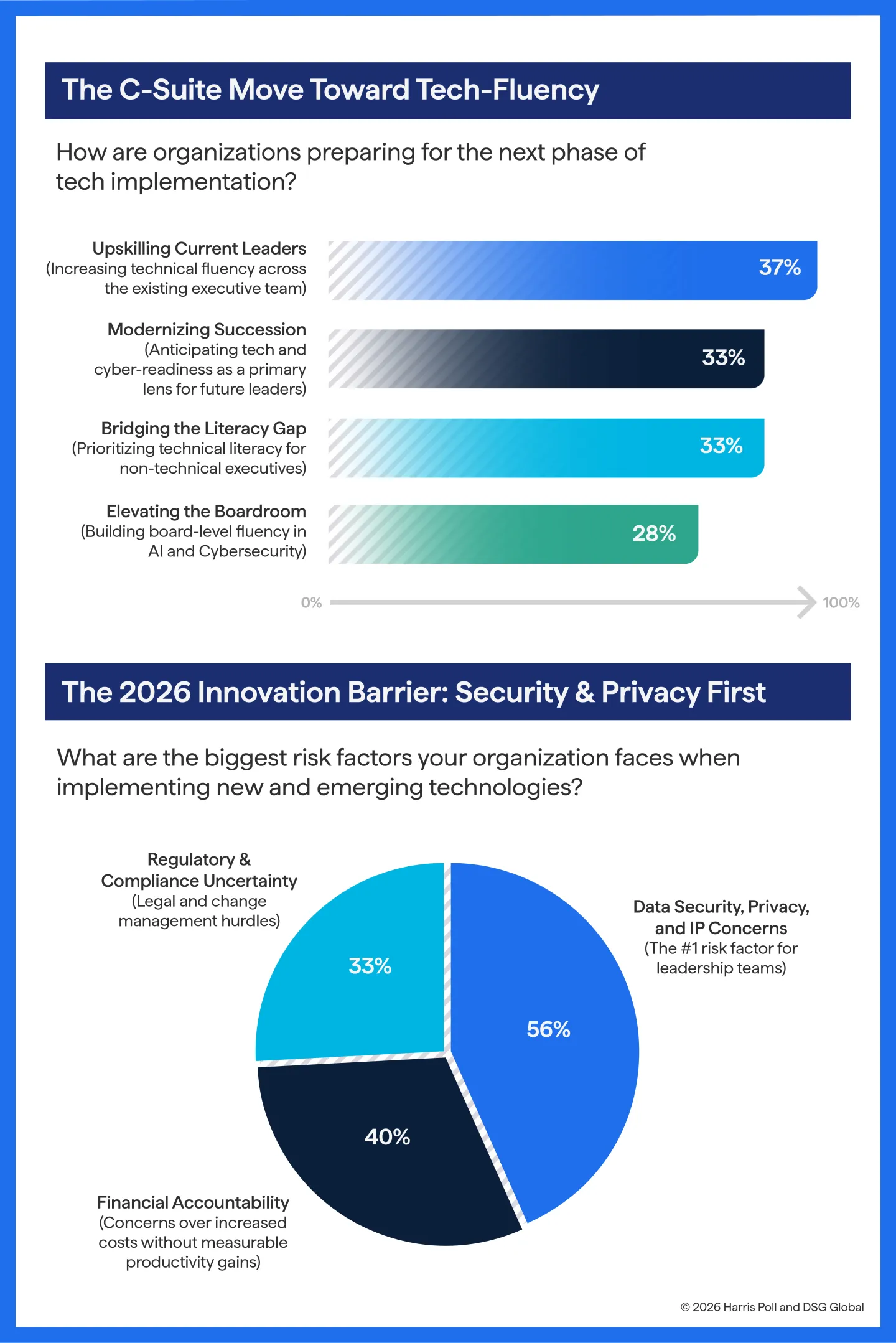 The CIO’s role in elevating the C-suite’s tech literacy. While more than half (56%) of 300 U.S. business leaders recently surveyed by Harris Poll reported that data security, privacy, and intellectual property were their biggest concerns when implementing AI and other new technologies, the same study made the case that it is a business risk that technology literacy among the C-suite wasn’t as sturdy as it should be. And yet—even more than three years into the generative AI boom—nearly one in three (28%) say limited board-level fluency in technology, AI and cybersecurity are a top challenge when deploying new technology.