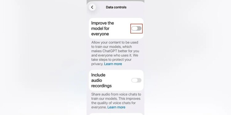 Turning off “Improve the model for everyone” stops your ChatGPT conversations from being used for training. (Kurt “CyberGuy” Knutsson)
