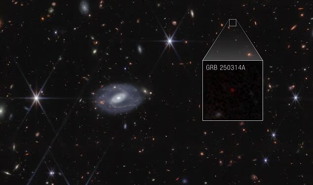 A gamma-ray burst named GRB 250314A (Pictured) is believed to the be the source of a mysterious signal received from 13billion light-years away