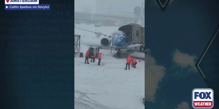 Hundreds of flights disrupted at airport in Amsterdam during extreme snow