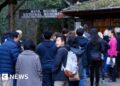 TOPSHOT – Electrical poles are down as a man bikes through the destroyed neighborood of North Street following the passage of Hurricane Melissa, in Black River, Jamaica on October 29, 2025. Hurricane Melissa bore down on the Bahamas October 29 after cutting a path of destruction through the Caribbean, leaving 30 people dead or missing in Haiti and parts of Jamaica and Cuba in ruins. Somewhat weakened but still threatening, Melissa will bring damaging winds and flooding rains to the Bahamas Wednesday before moving on to Bermuda late Thursday, according to the US National Hurricane Center (NHC). (Photo by Ricardo MAKYN / AFP) (Photo by RICARDO MAKYN/AFP via Getty Images) ( )