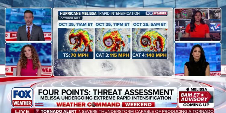 The situation is becoming more dire in Jamaica as the island nation braces for catastrophic impacts from Hurricane Melissa, when underwent rapid intensification and became a Category 4 hurricane on Sunday morning. FOX Weather Meteorologists Nick Kosir, Kiyana Lewis, Marissa Torres and Bayne Froney have the latest on Oct. 26, 2025.