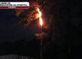 Tree set ablaze after lightning strike during Oklahoma thunderstorms