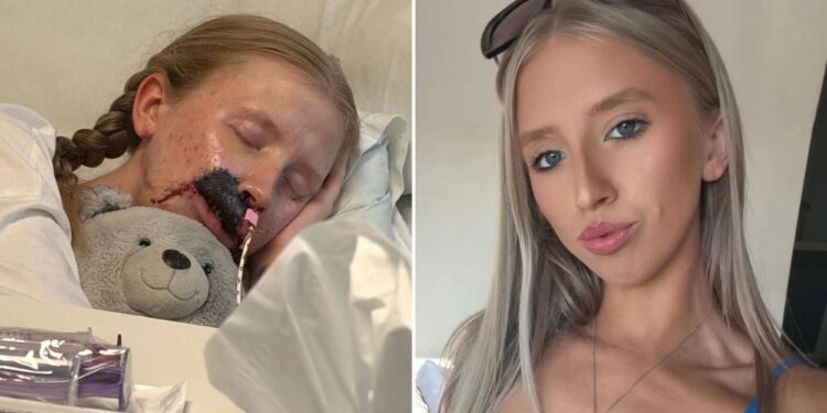 After looking in the hallway mirror and seeing “half her face was gone”, Samantha sprinted out of the house and headed to hospital.