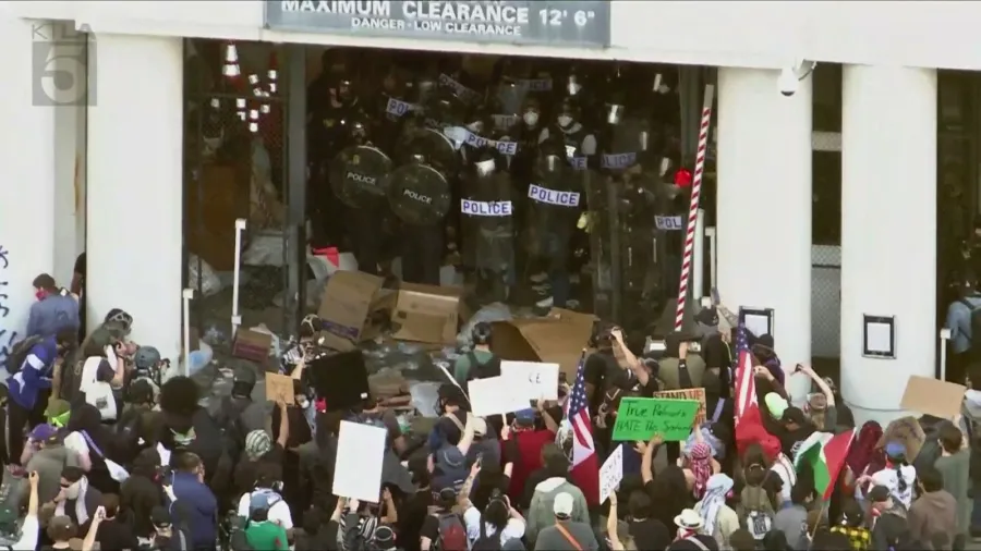 Law enforcement agencies staged nearby, including near the Hall of Justice, where barricades were erected several blocks from the rally site. Deputies told KTLA they coordinated with protest organizers ahead of time in an effort to prevent tensions from escalating.