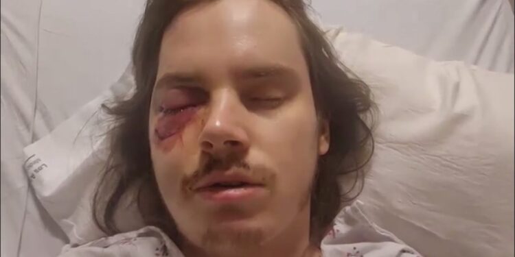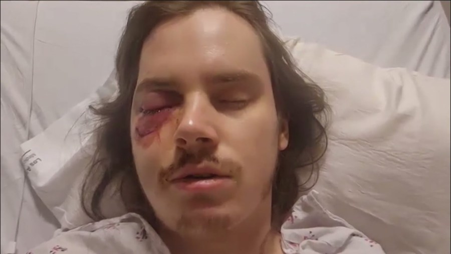 Marshall Woodruff, a Los Angeles filmmaker, said he was struck in the face by a less-than-lethal round Saturday night during a protest. “I just have a lot of pain and numbness in the right side of my face,” Woodruff said from his hospital bed. “When the bullet struck my face, all I could hear was a high-pitched ringing noise.” Woodruff said that he was part of the “No Kings Protest” when LAPD officers began firing into the crowd after declaring the gathering unlawful.