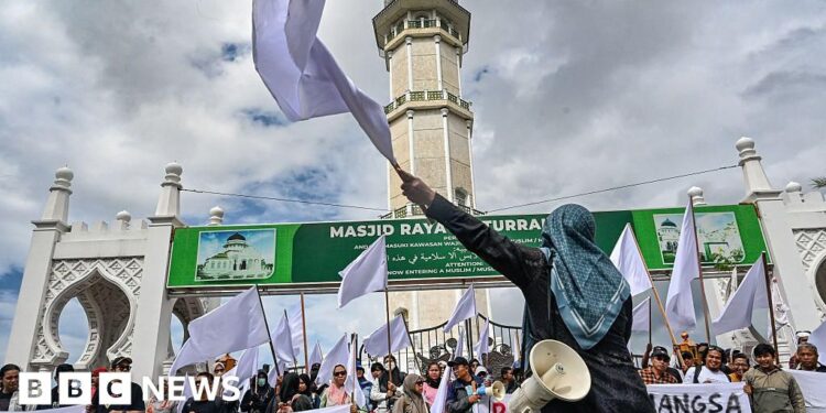 “The flags do not mean we are giving in. They are a distress signal to grab the attention of friends outside, to let them know the conditions in Aceh today are very bad,” Husnul Khawatinnissa, who was at the rally, told the BBC.