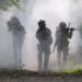 Large plumes of smoke can be seen engulfing a bridge and spreading across the surrounding countryside, stopping locals in their tracks.