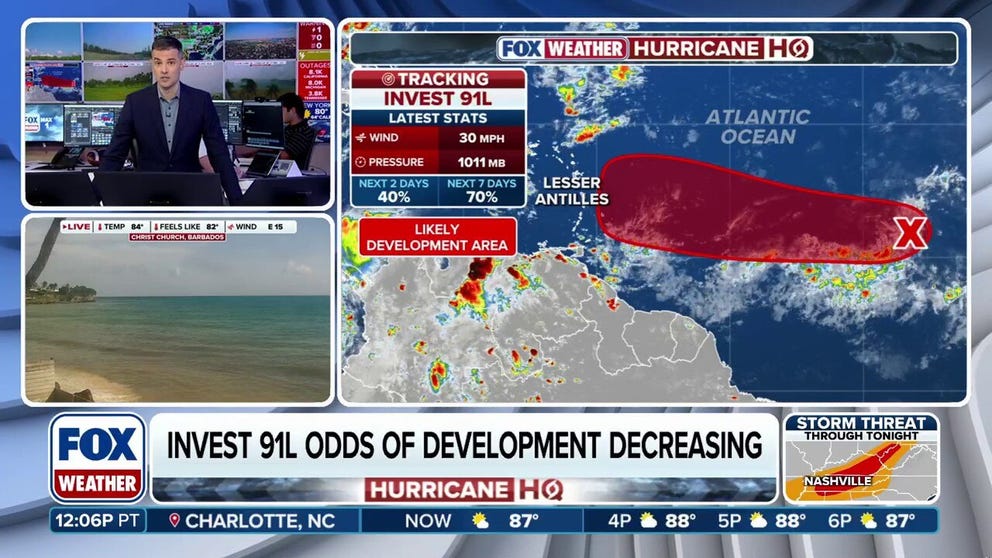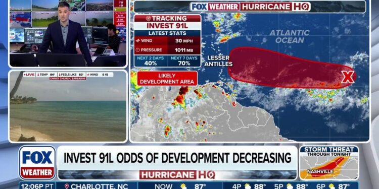 The FOX Forecast Center has been keeping a close eye on Invest 91L, located in the central Atlantic. An “invest” is a term used by the National Hurricane Center to indicate a system being watched for possible tropical development.