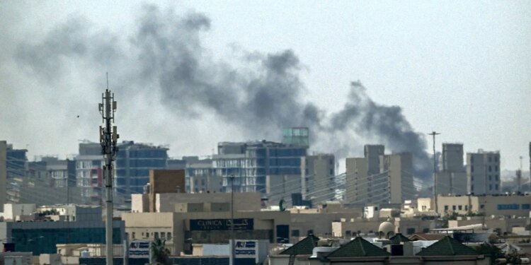 A plume of smoke rises over buildings in Doha, Qatar, on March 5, 2026. (Mahmud Hams/AFP via Getty Images)