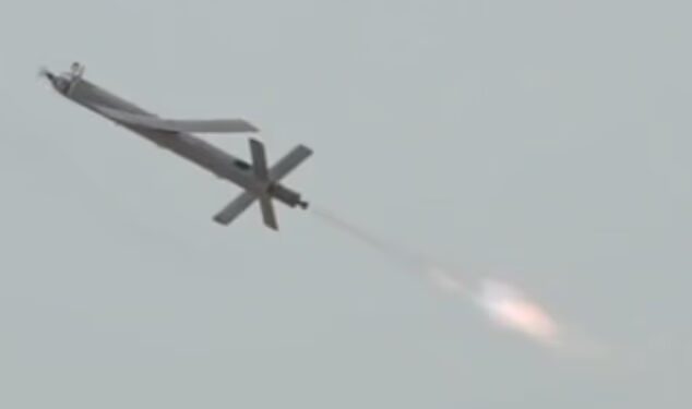 The aircraft also appears to feature a rocket booster mounted at the rear of the fuselage, which helps accelerate the drone during launch before detaching once it reaches operational speed.