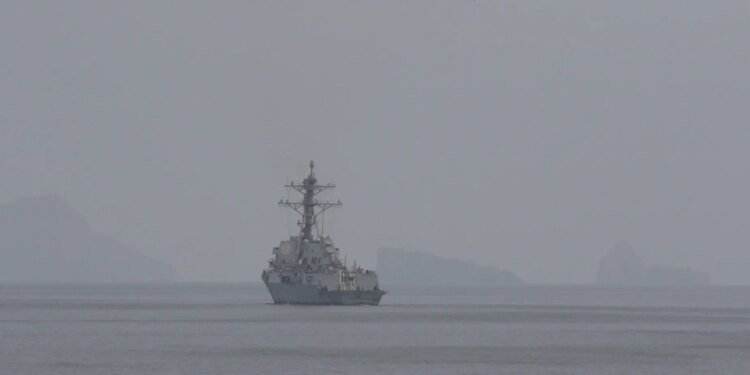 The USS Michael Murphy turned on its automatic identification system as it and another destroyer, the USS Frank E. Peterson, transited the strait, breaking the typical protocol of Navy ships sailing with their AIS turned off.