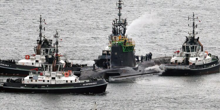 HMS Artful, an Astute-class nuclear-powered fleet submarine, is shown at His Majesty’s Naval Base Clyde on March 4, 2025. ((Jeff J Mitchell/Getty Images)
