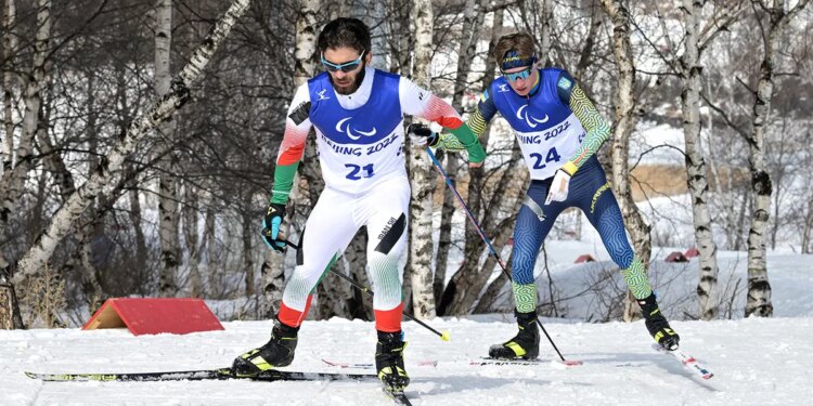 Aboulfazl Khatibi Mianaei of Iran competes in the men’s middle-distance free technique standing at the Beijing 2022 Winter Paralympics at Zhangjiakou National Biathlon Centre in Zhangjiakou, China, March 12, 2022. (Lintao Zhang/Getty Images)