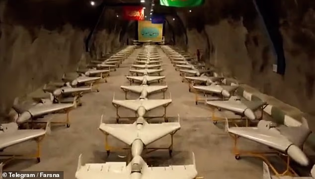 Iran has showed off a sprawling underground network of tunnels filled with row after row of drones and rockets