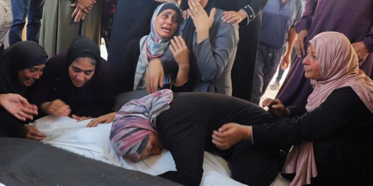 Footage circulating online showed casualties being rushed away in a small vehicle surrounded by people. The video below shows a mother crying out that she lost “all of my children” in the Israeli attack in the Sabra neighbourhood, located south of Gaza City.