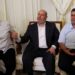 He appeared downcast, dressed in a blue zip-up sweater with the hood up and grey shorts, and later drove off in a vehicle that was not electric-powered