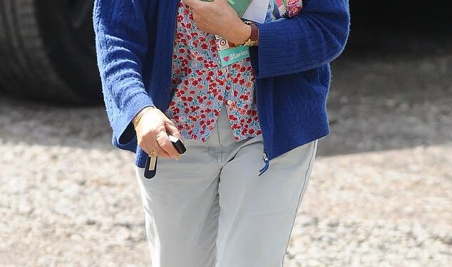 Snaps taken on Saturday morning at the Euridge Manor Farm in the Cotswolds show a hive of activity at the idyllic location, with the comedian’s mother Hilary beaming with pride as she arrived on site.