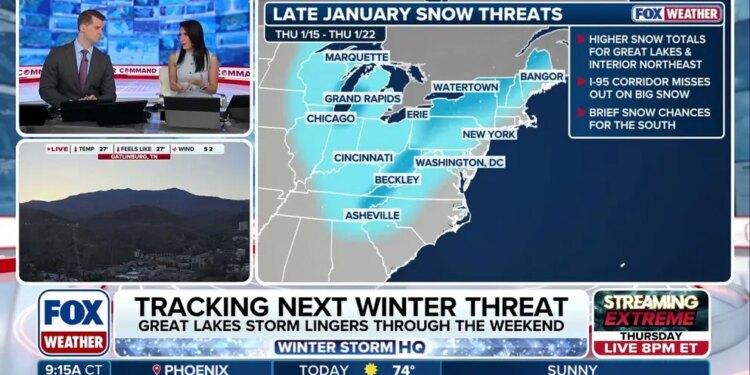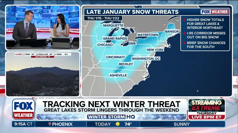After a brief thaw, winter will return with a vengeance for the rest of January across most of the eastern half of the U.S. with Arctic temperatures and rounds of snow for the Great Lakes and Interior Northeast. The winter chill will dip into parts of the Southeast where higher elevations in North Carolina and Tennessee could see snow as storms move across the region.