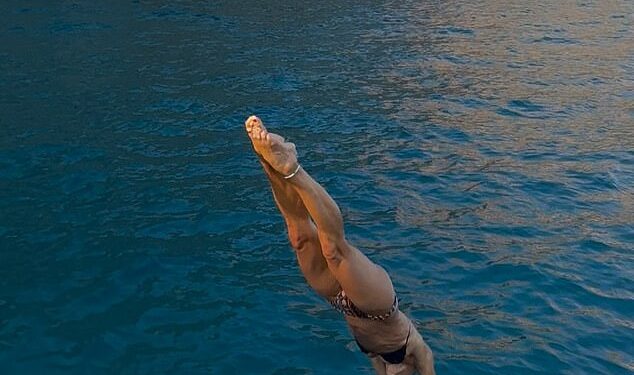 The Scottish radio and TV host, 49, showed off her toned frame while plunging off a lavish yacht during the exotic getaway.