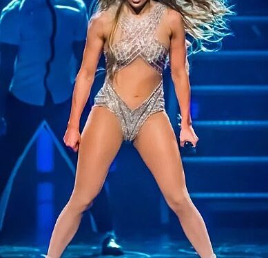 When the Grammy winner performed her residency in Las Vegas, she was gussied up in low-cut leotards with a thong back showing her butt. The Hustlers actress also wore lingerie for a boudoir scene. And Jenny modeled a sleeveless dress for a touching ballad.