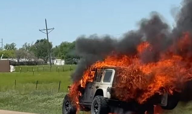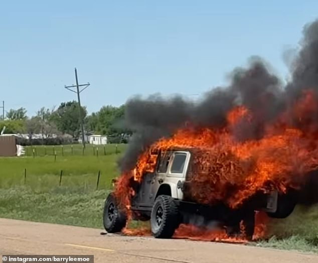 The charred remains of the Jeep were seen in a subsequent pic on Moe’s Instagram page