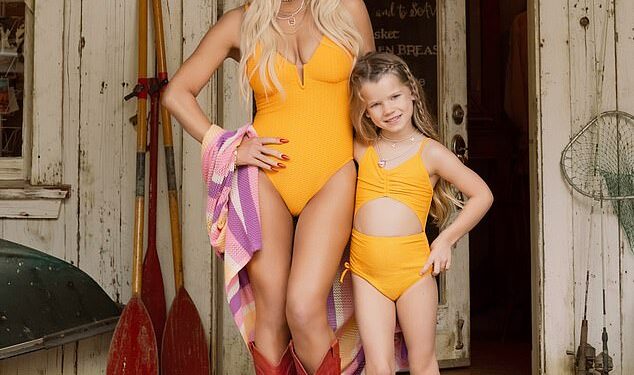 Jessica Simpson, 44, and her mini-me daughter Birdie, six, modeled matchings swimsuits to promote the star’s new line which dropped at Walmart