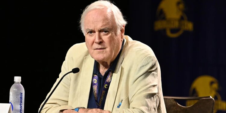 John Cleese speaks onstage during “An Hour with John Cleese: There Are Those Who Call Him…John!” session during the 2024 Dragon Con at Atlanta Marriott Marquis on Aug. 31, 2024 in Atlanta.   (Paras Griffin/Getty Images)