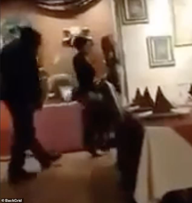 A fellow diner appears to have noticed the couple elsewhere in the restaurant and snagged a clip of them walking out of the dining room.