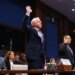 Lou Holtz, former Notre Dame football coach, addresses the America First Policy Institute’s America First Agenda Summit at the Marriott Marquis July 26, 2022. (Tom Williams/CQ-Roll Call, Inc)