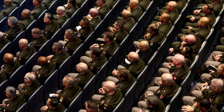 Washington, DC – United States President Donald Trump has addressed hundreds of US generals in Virginia on topics ranging from climbing up stairs to the crisis in Ukraine – often repeating his talking points and bouncing between subjects.