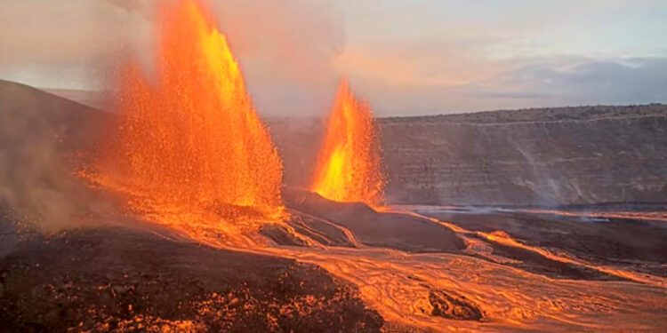 The molten rock was confined within Kilauea’s summit caldera inside Hawaii Volcanoes National Park, the U.S. Geological Survey said. No homes were threatened.