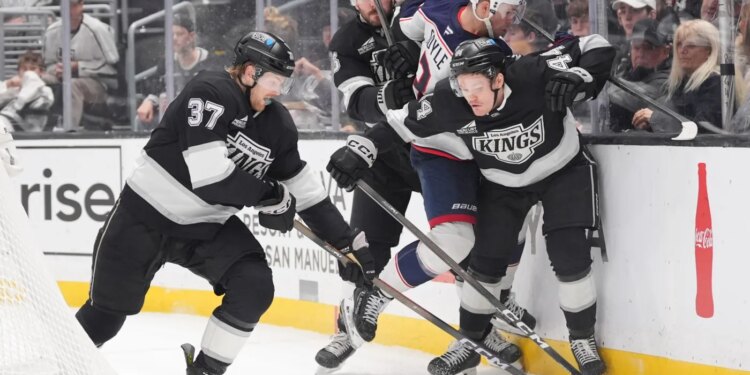The Kings were playing for the first time since trading third-line center Phillip Danault to Montreal on Friday, but newly-promoted bottom six centers Alex Turcotte and Samuel Helenius struggled to make a consistent impact with frequent penalties creating a choppy game flow.