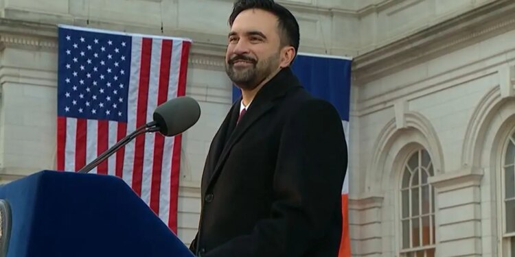 New York City Mayor Zohran Mamdani delivers his inaugural address Thursday, Jan. 1, 2026, outside City Hall. (Fox News/Pool)