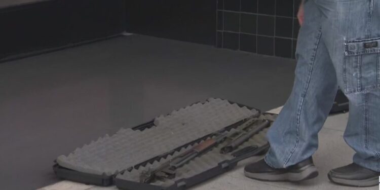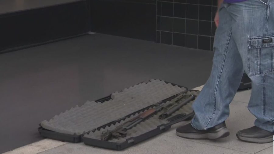 The man set the cases on the ground outside the doors to the Apple Store and when he opened them, the KTLA employees spotted several long guns. Kimberly and Andre quickly backed away from the scene and called for police.