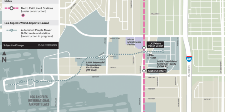 It will also provide direct connection to LAX via the Los Angeles World Airport’s Automated People Mover, which is tentatively scheduled to open early next year after a series of delays. An LAX bus shuttle will service the station in the meantime.