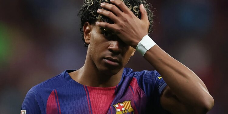 Lewandowski’s dramatic late winner was celebrated by the Barcelona players on the pitch and bench, but Yamal looked subdued as he trudged on the pitch by himself.