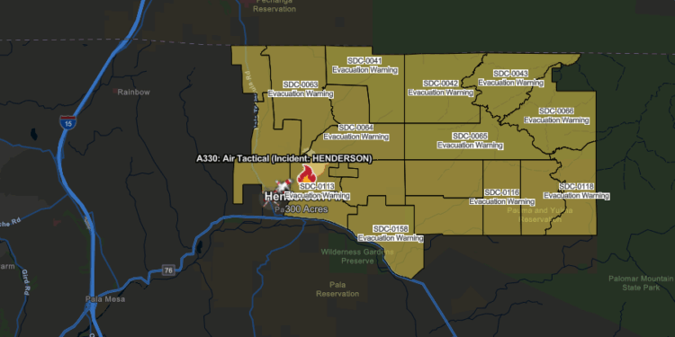 As of 10 a.m. on Saturday morning, the Henderson Fire had burned 300 acres and was 15% contained, according to Cal Fire San Diego.