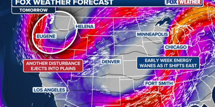 “The southern Plains northward through the mid-Mississippi Valley and into the Upper Midwest will face the greatest risk from developing storms,” the FOX Forecast Center said.