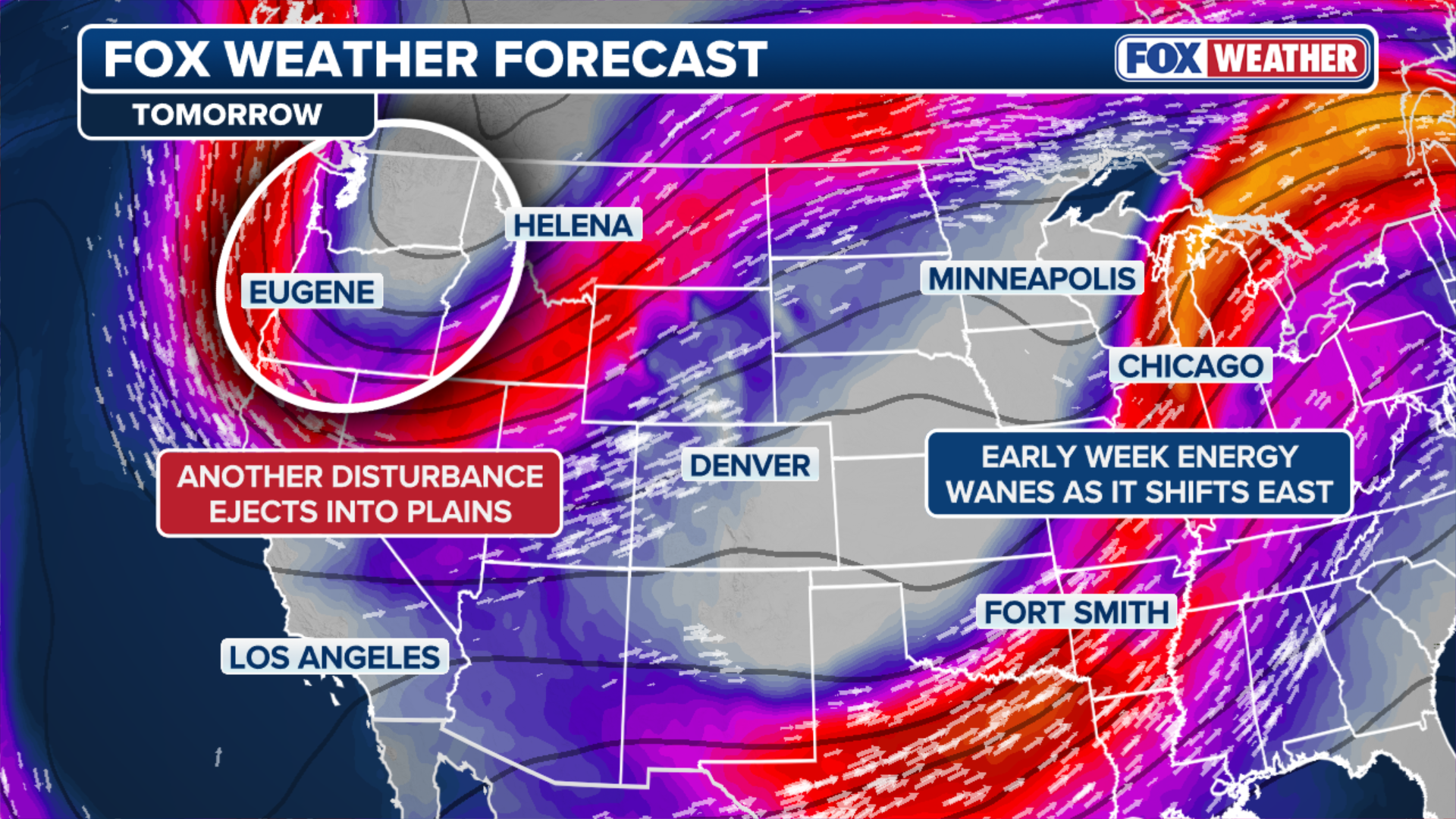 By night, the front will accelerate, forecast to reach the East Coast by Sunday morning.