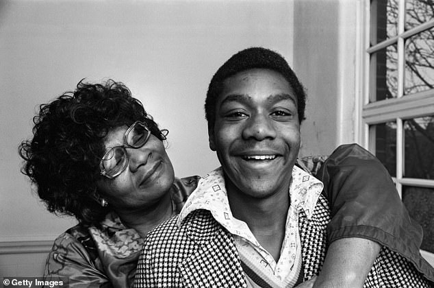 Lenny Henry, 66, has revealed he used humour as his ‘shield’ against racist bullies during his childhood (pictured with his mother Winifred in 1975)