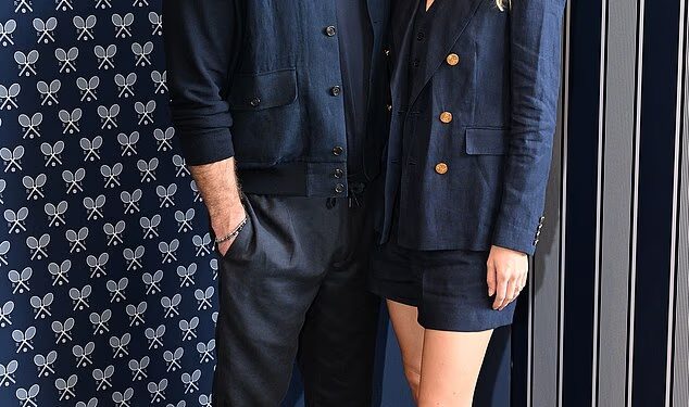 Liam matched his fiancée, also sporting navy blue, including a cropped jacket over a fitted T-shirt.