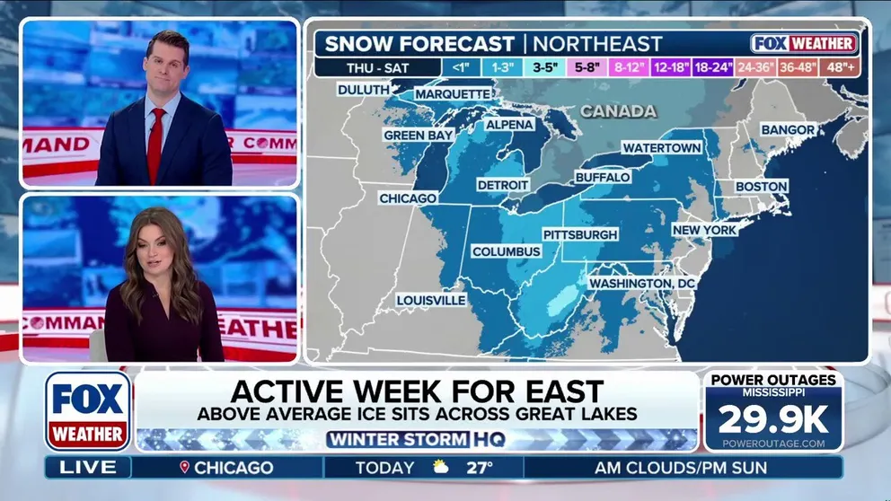 NEXT ROUND OF SNOW BEGINS ACROSS WINTER-WEARY EAST, LATE-WEEK STORM COULD CAUSE TRAVEL TROUBLE