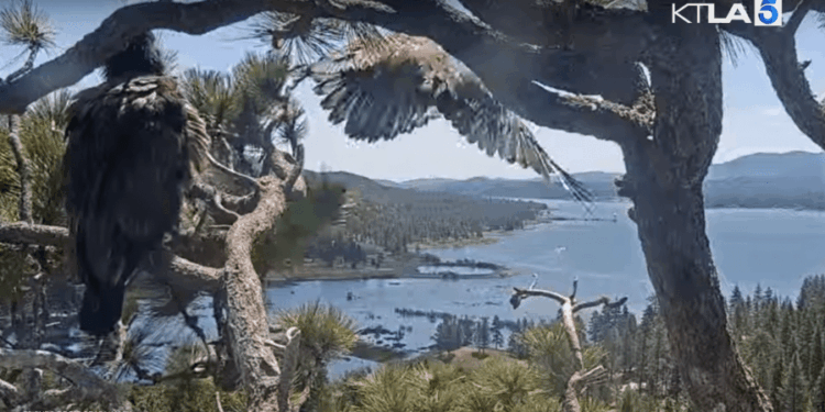 Their nest is located near the top of a 145-foot Jeffrey pine tree within the San Bernardino National Forest.