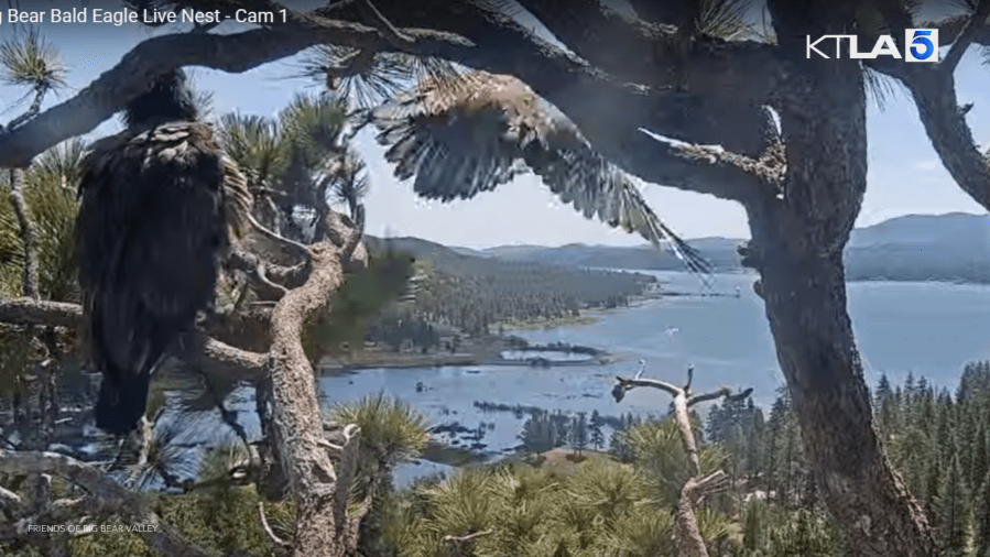 One of the Big Bear bald eagle chicks just made a big leap.